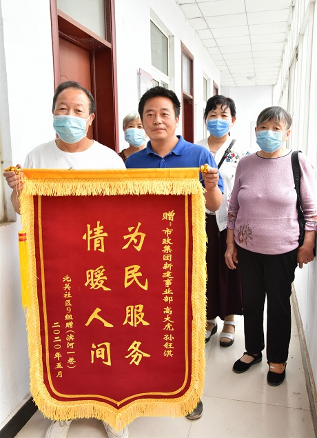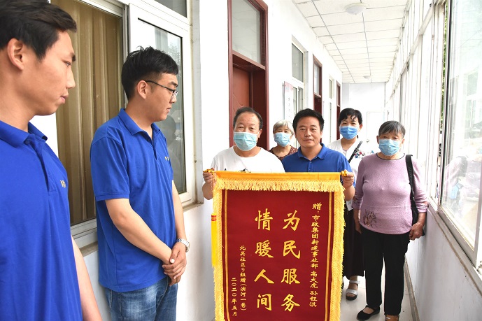 “今年我們家門口這條街道能夠得到整修和提升改造,多虧了咱公司的施工建設(shè)……”5月25日,公司來了一批特殊的“客人”,他們一進(jìn)門就將一面鑲著“為民服務(wù)、情暖人間”8個大字的錦旗遞到老街道改造提升項(xiàng)目濱河一巷負(fù)責(zé)人高大虎的手里。