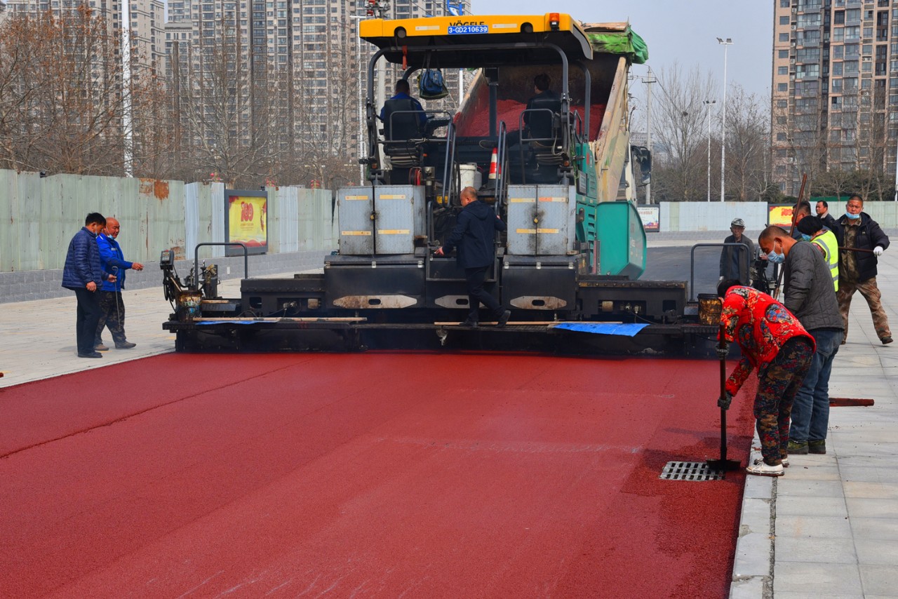 3月4日7時,在生產(chǎn)機器隆隆的轟鳴聲中,許昌市政集團自主生產(chǎn)的第一車彩色瀝青混凝土成功出廠。伴隨著冉冉升起的朝陽,滿載著彩色瀝青混凝土的運輸車駛向施工工地。